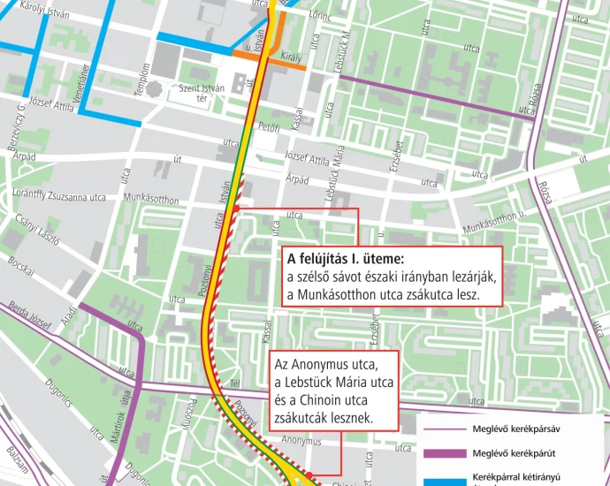 Hétfőn indul az újpesti útfelújítás: hónapokra változik a forgalom az István úton és a Pozsonyi utcában